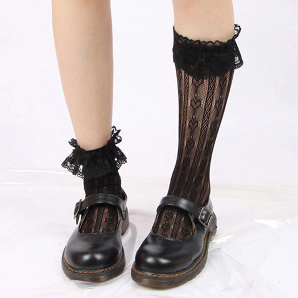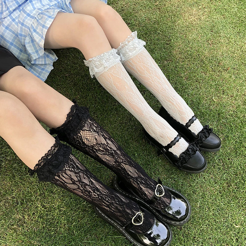 Носки женские кружевные до колена, черные, белые, 1 пара