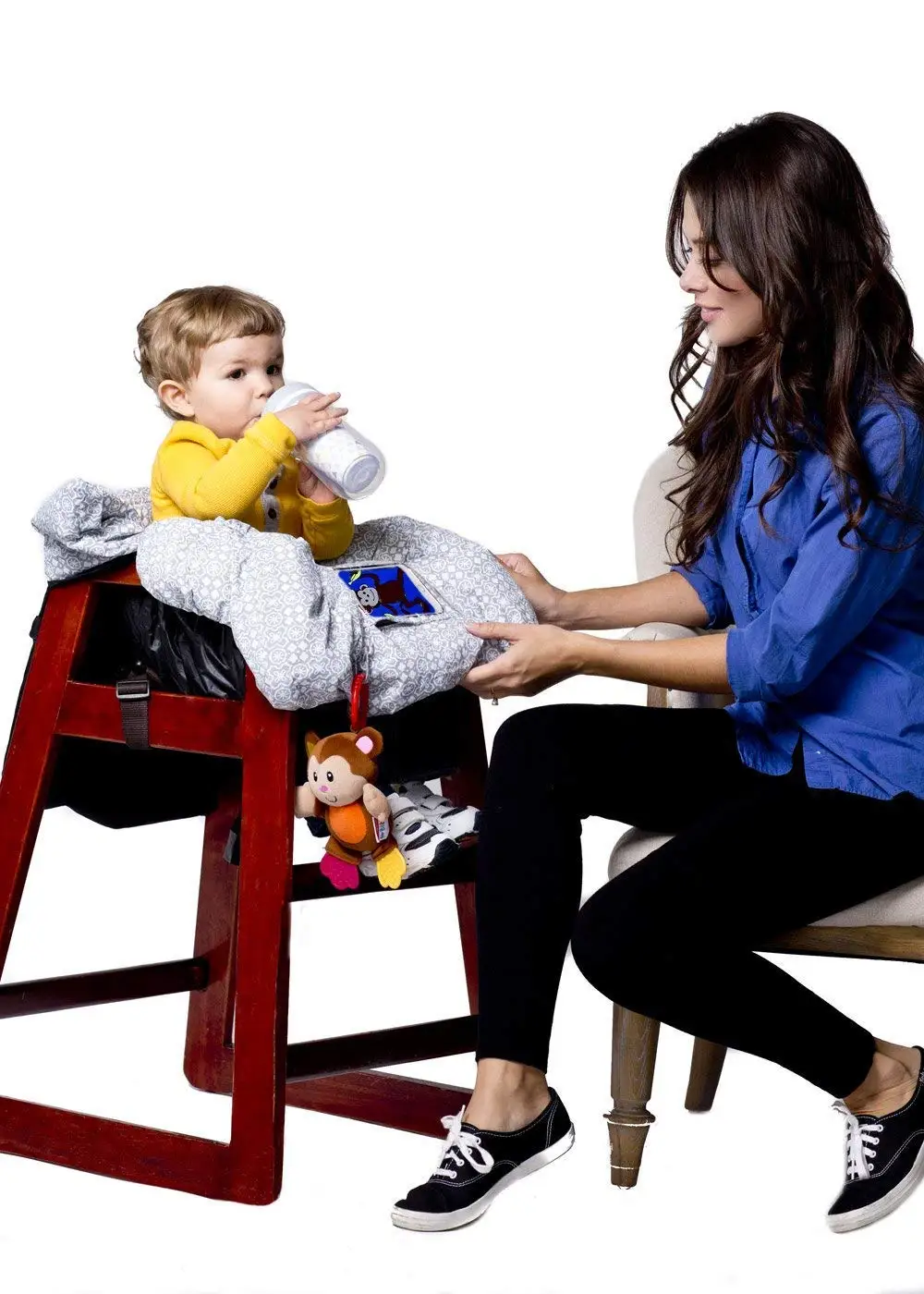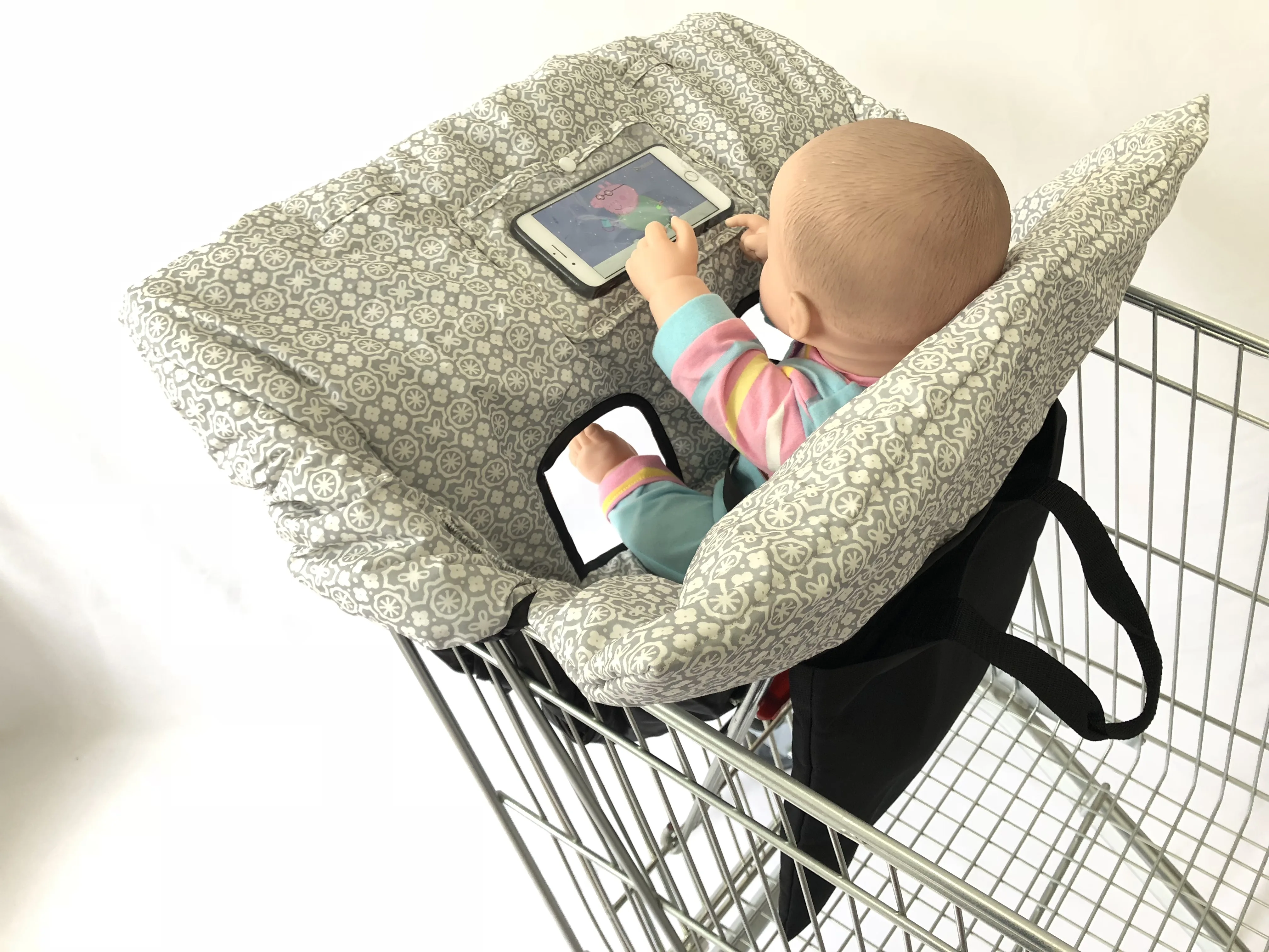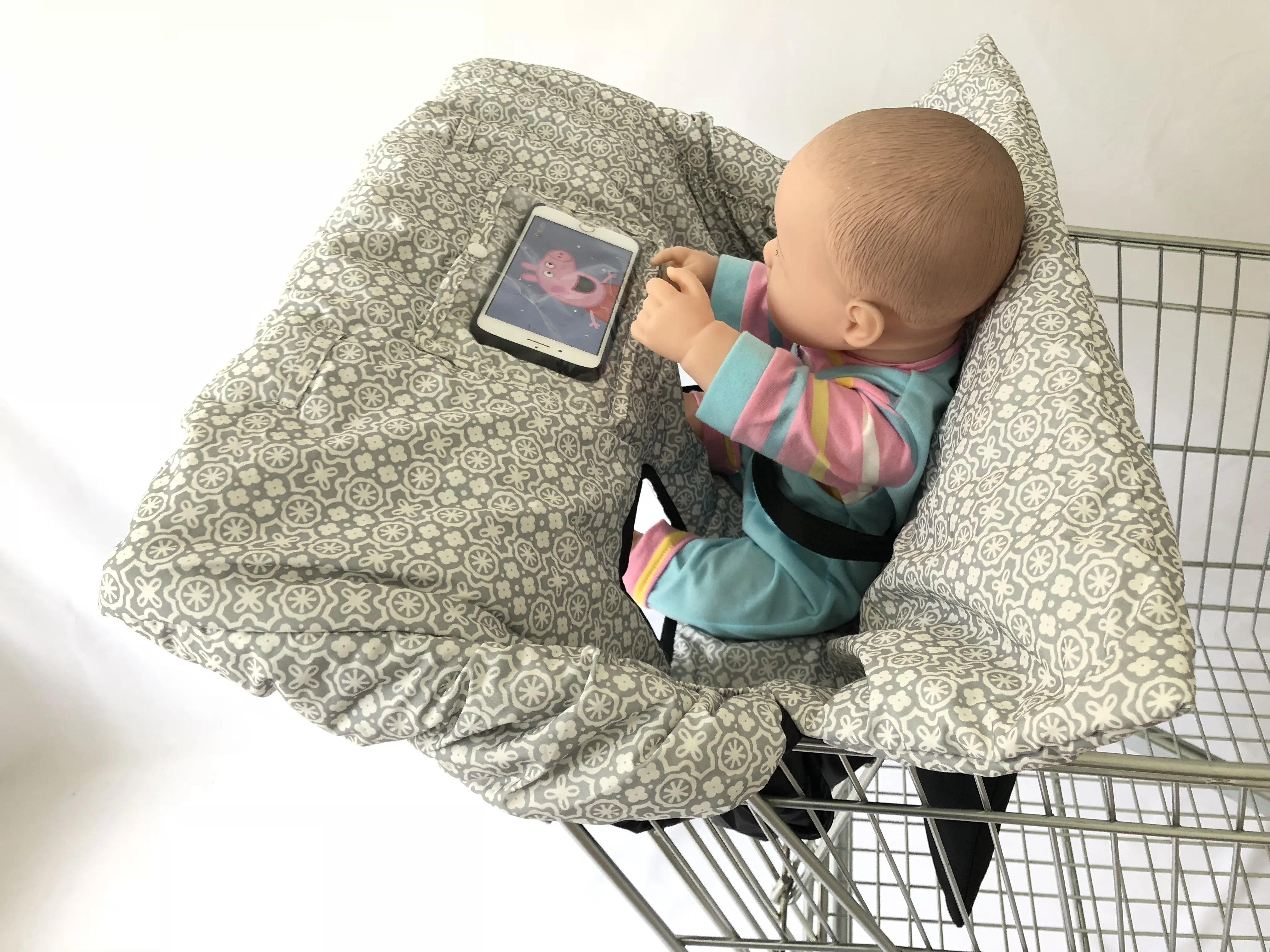 Водонепроницаемый чехол для детской корзины 2-в-1 и высокие чехлы для стульев с ремнем безопасности для маленьких детей и малышей (унисекс, серый)