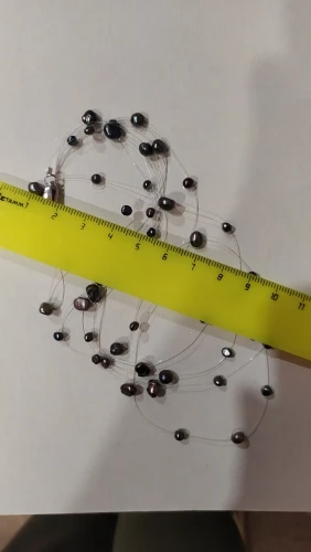 Ужасное качество. На трёх лесках минимальное количество жемчуга, сам жемчуг размером 3-4 мм, пару жемчужин 5мм. Длина нитей 30-35 см на детскую шею. На мне смотрится, как удавка (рост 165, вес 61кг, не колобок)