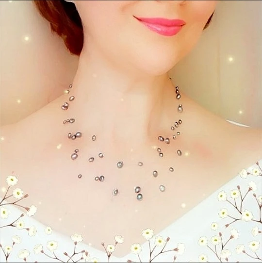Очень красивое ожерелье на шее и бусы в виде дождя не очень большие, но выглядят изысканно и красиво, вы видите это, и продавец хороший, теперь я жду жемчужного ожерелья, я куплю у вас еще раз спасибо