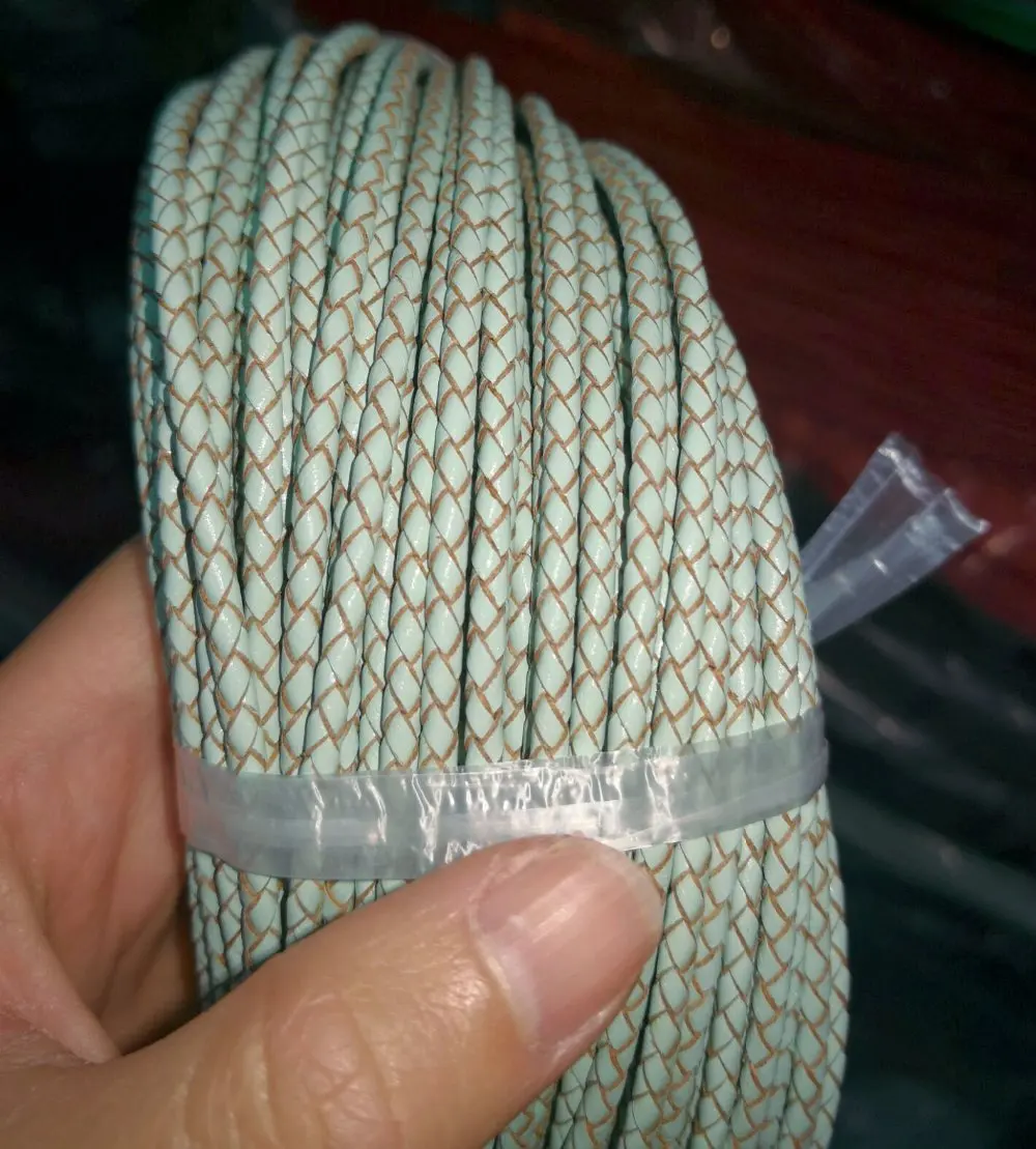 Плетеный кожаный кабель Bolo, круглая полоса из натуральной кожи для ожерелья, браслета светильник-перечной мяты, зеленого цвета, 3 мм