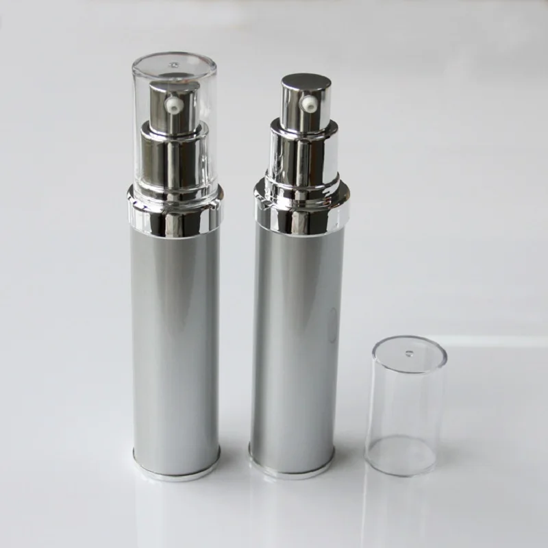 Пластиковая бутылка для лосьона, эмульсии, тонального крема, сыворотки, 30 мл, серебристая безвоздушная бутылка