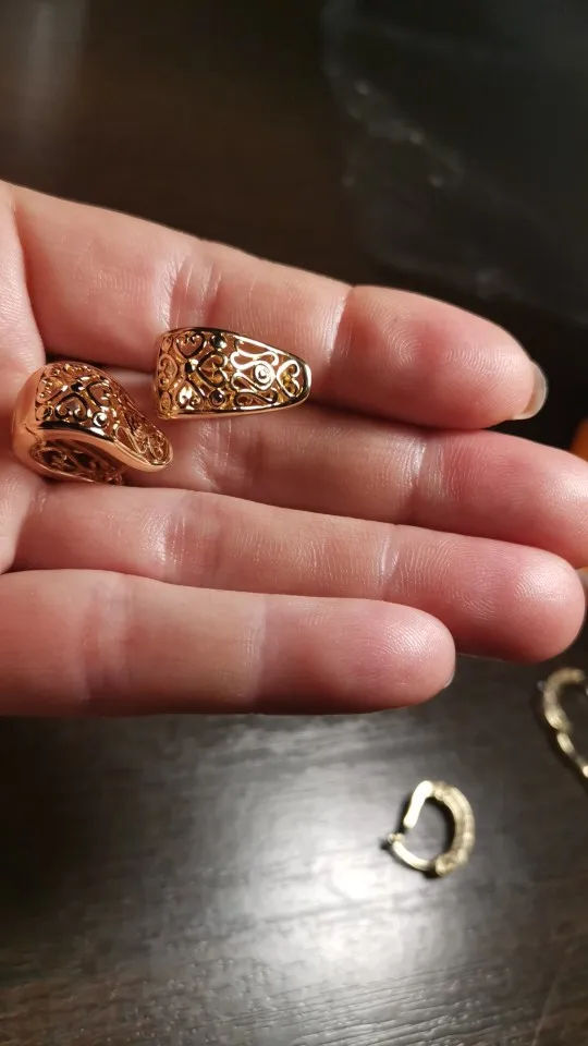Очень замечательные серьги.Оттенок золота-шампань.Смотрятся раскошно.Доставка 14 дней,могут,если хотят.