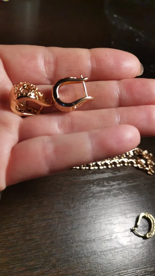сережки красивые! замочки крепкие! это уже вторая пара. первую относила год не снимая даже в бассейне. не облезли и не потемнели. как новенькие!