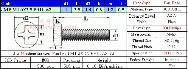 Винты из нержавеющей стали M1x2.5 с цилиндрической головкой, настольный драйвер, ROHS, полированные, 100 шт., винты QCTI