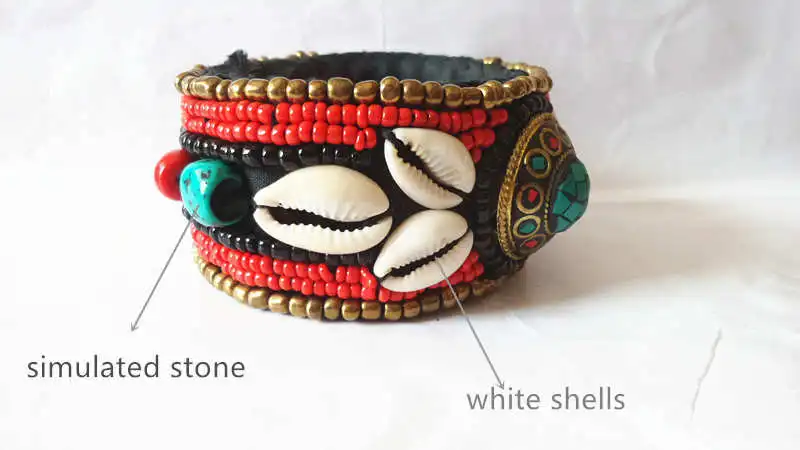 BB-168 Тибетский модный Открытый браслет с манжетами Тибетский этнический ручной сшитой ракушкой в богемном стиле