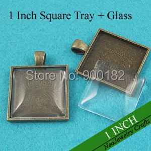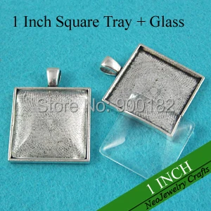 1 дюймовый набор квадратных кулонов: 1 ''античный серебряный квадратный пустой поднос для кулонов, настройки кулонов + прозрачный стеклянный кабошонUS $45,00/Лот
