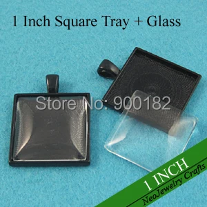 1 дюймовый набор квадратных кулонов: 1 ''черный квадратный пустой подвесной лоток, настройки кулонов + прозрачный стеклянный кабошонUS $45,00/Лот