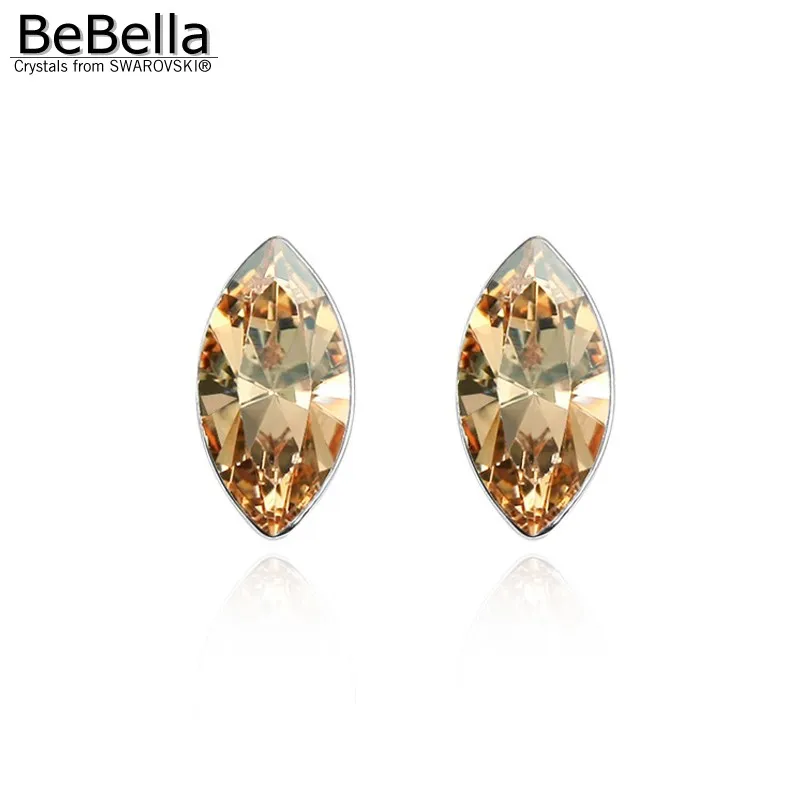 Женские серьги-гвоздики BeBella, с кристаллами маркизы, с элементами Сваровски, navette, ювелирное украшение, подарок для девочек