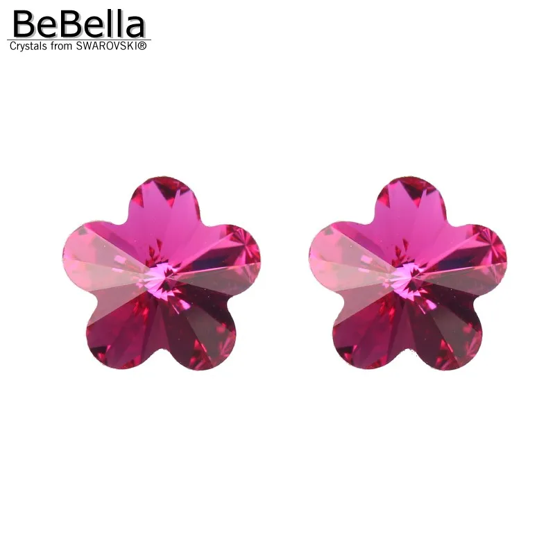 Женские серьги-гвоздики с кристаллами Сваровски, с цветком сливы