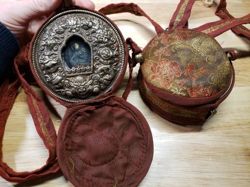 TGB081 тибетская старая латунная круглая молитвенная коробка тибетская буддийская Сумка-амулет восемь ауспиций (бабао) Бесплатная доставка