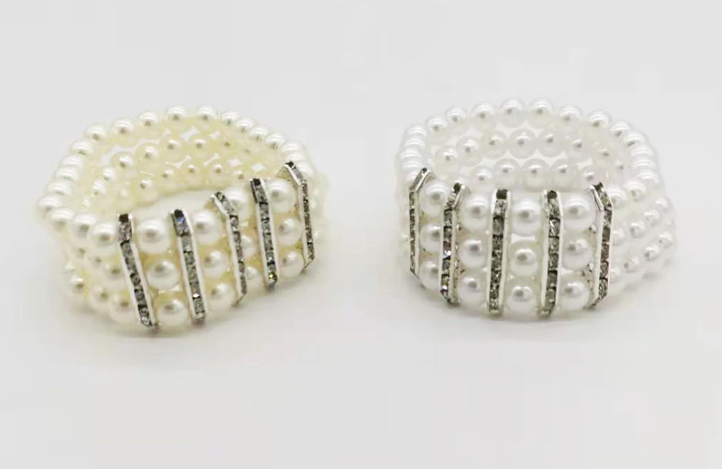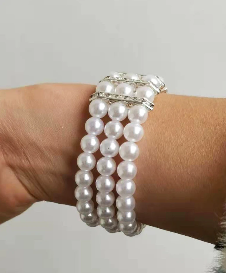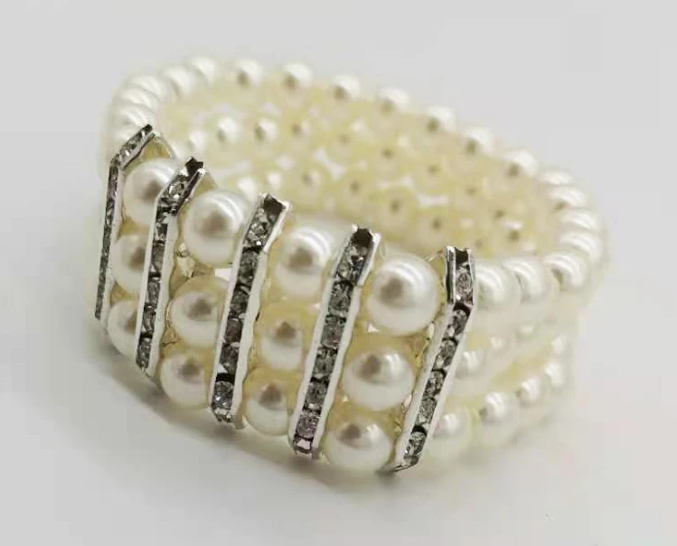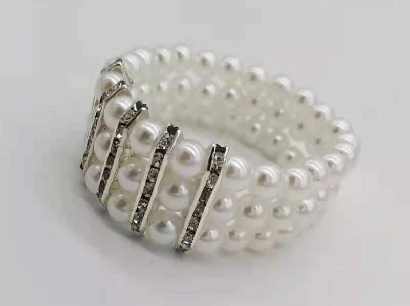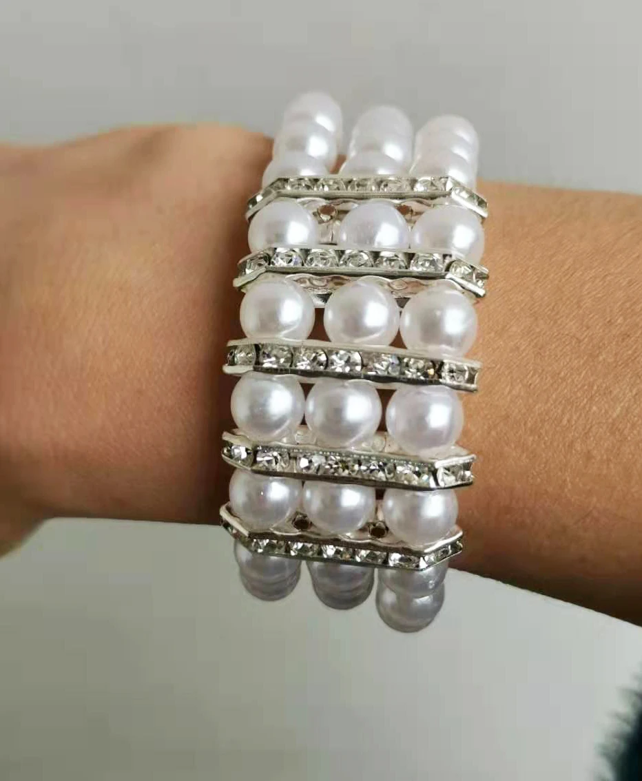 Модные трехрядные белыерозовые жемчужные бусины, эластичный браслет с прозрачными стразы, аксессуары, цельный pbb1004