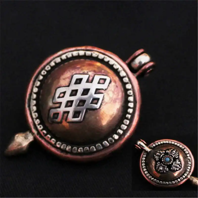 * Изготовлен из латуни и меди, инкрустирован красочной мини-бусиной.* Двухсторонние узоры, вырезанный вручную крест дорье и тибетские счастливые узлы.