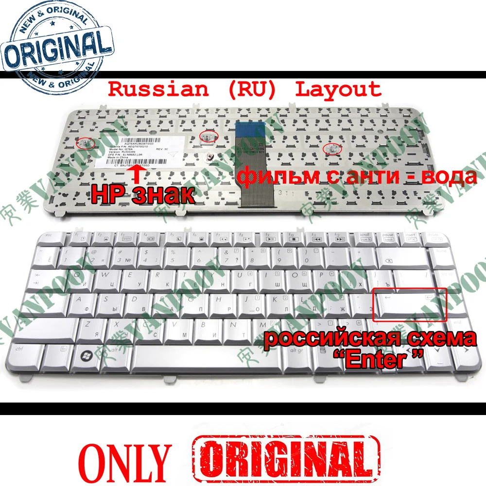 Клавиатура для ноутбука HP Pavilion, русская версия, dv5 dv5-1000, dv5t, dv5z, серебристый, 488590-251, NSK-H5L0R
