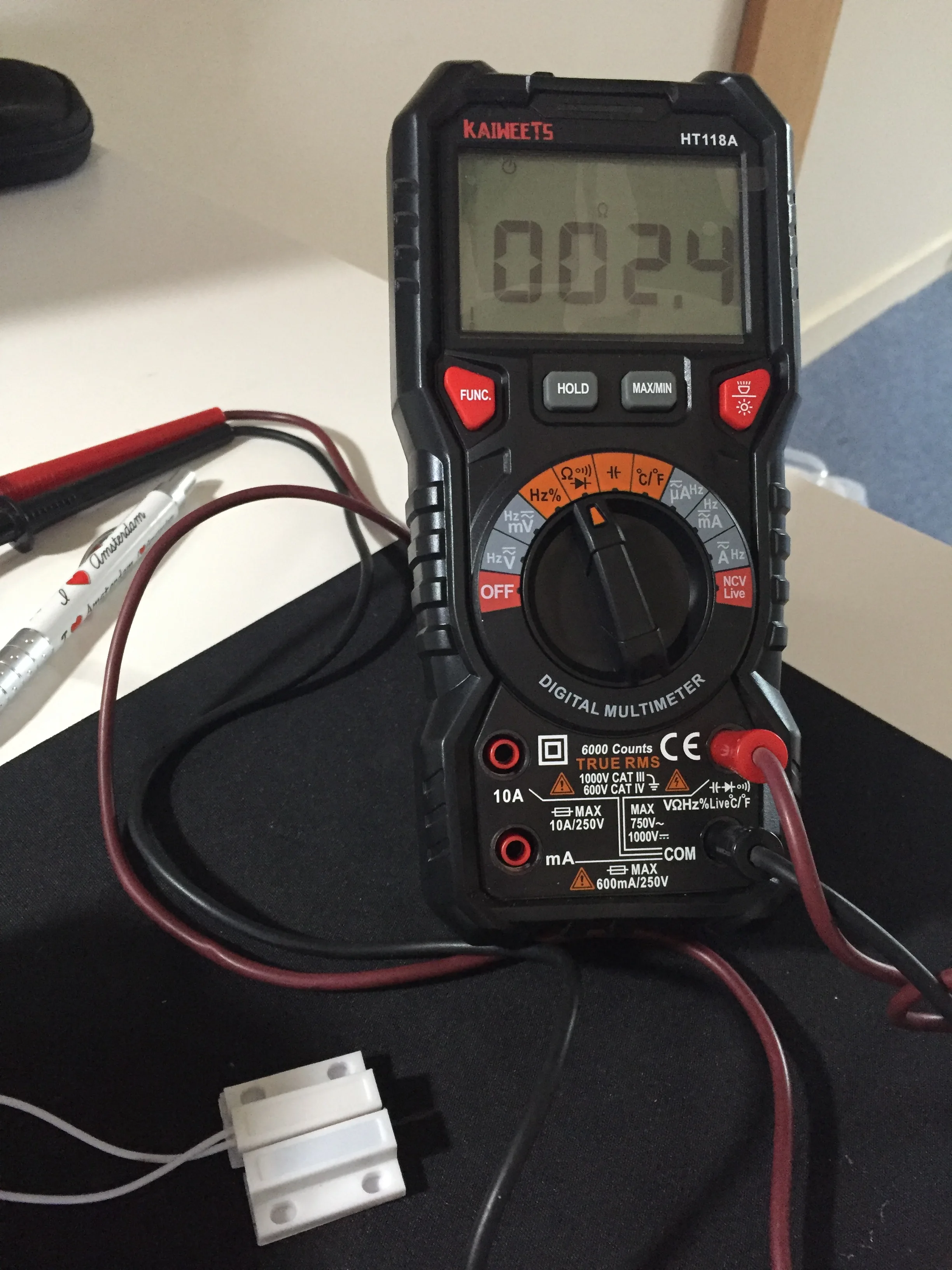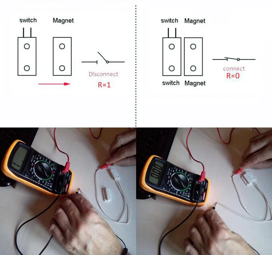 La photo avec le multimètre n'est pas bonne. C'est un contact fermé. Le contact se fait quand les deux aimants sont réunis. Le multimètre devrait donc affiché une valeur de 1 et pas 0. J'ai eu un doute en voyant le multimètre, mais j'ai quand même passé la commande et ce n'est donc pas ce que je voulais ;-(