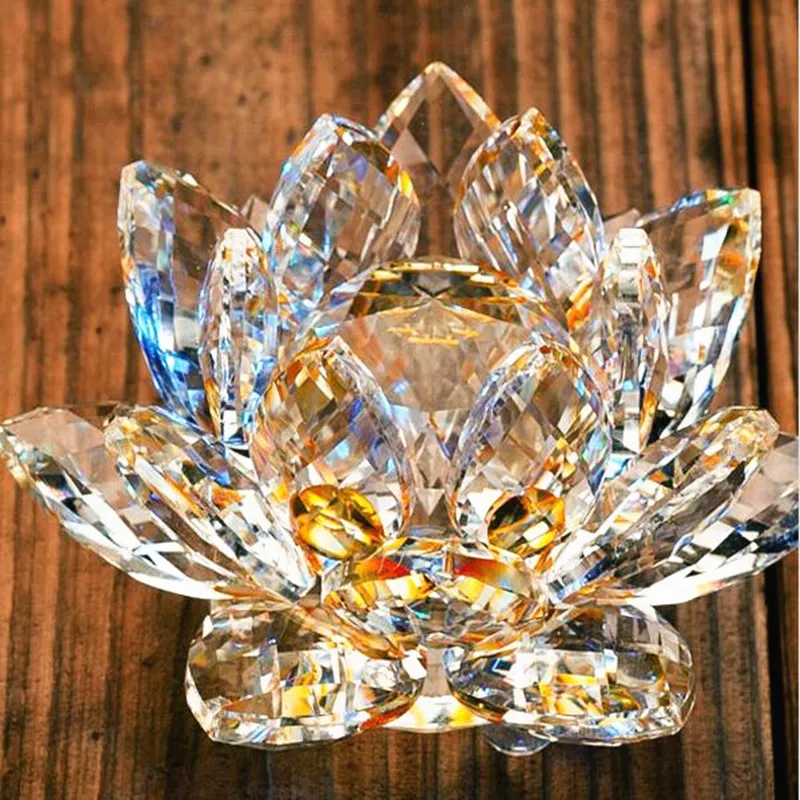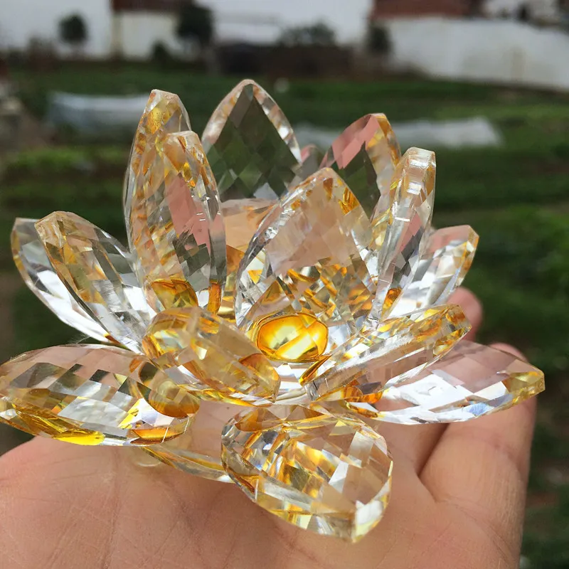 Оптовая продажа цена красивый 140 мм K9 кристалл золотой Лотос цветок стекло продукт украшение дома/украшение в буддистском стиле/подарки на день рождения