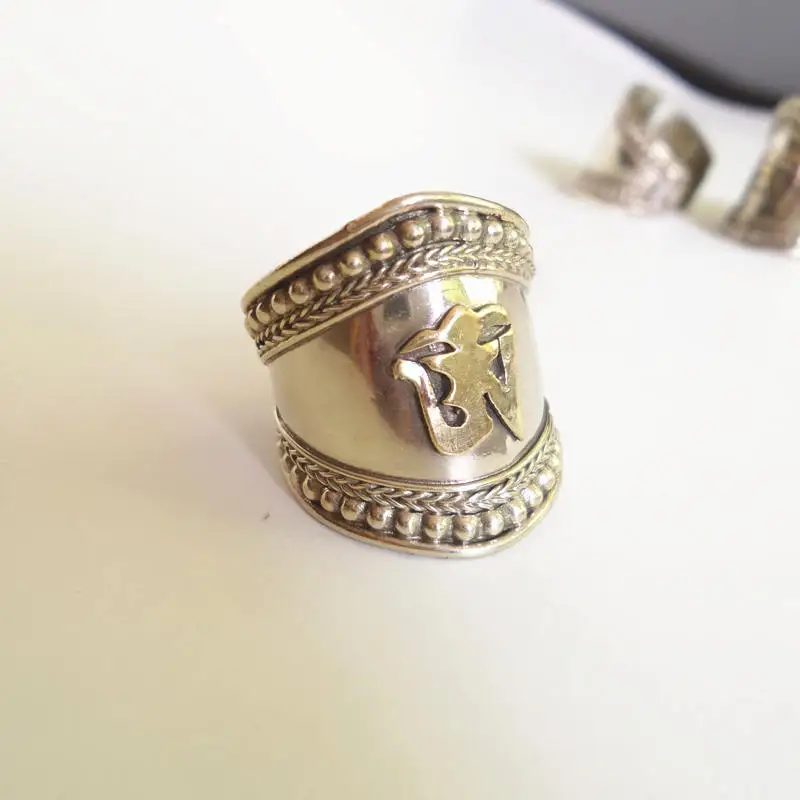 R045 Тибетские мантры ОМ раньше для мужчин Медный сплав открытый размер