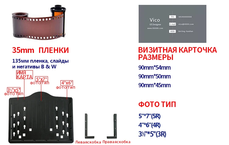 Пленочный сканер преобразует обе пленки (35 мм negativer, slide, B & W отрицательная пленка) и фото (Размер фото:3½"* 5", 4 "* 6", 5 "* 7"), визитная карточка (91*55 мм)