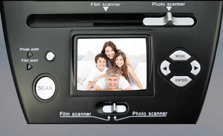 4 в 1 Многофункциональный сканер:16 мегапикселей (интерполяция), 8,1 мегапикселей CMOS sensore, поддержка 135 35 мм отрицательных эффектов, слайды, размеры фото 5 ”x 7” (5R), 4 ”x 6” (4R) И3½" x 5” (3R)и именная карточка размеров 91*55 мм. Сканер фотопленки, отрицательный конвертер, цифровой сканер пленки