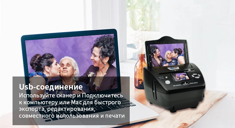 Простая передача файлов:Фотографии можно сохранить на любой карте памяти SD. Просто подключите usb-кабель к любому usb-порту на вашем ПК или mac и поместите сканер в режим передачи данных USB для передачи оцифрованных фотографий. В нем также есть адаптер питания USB.