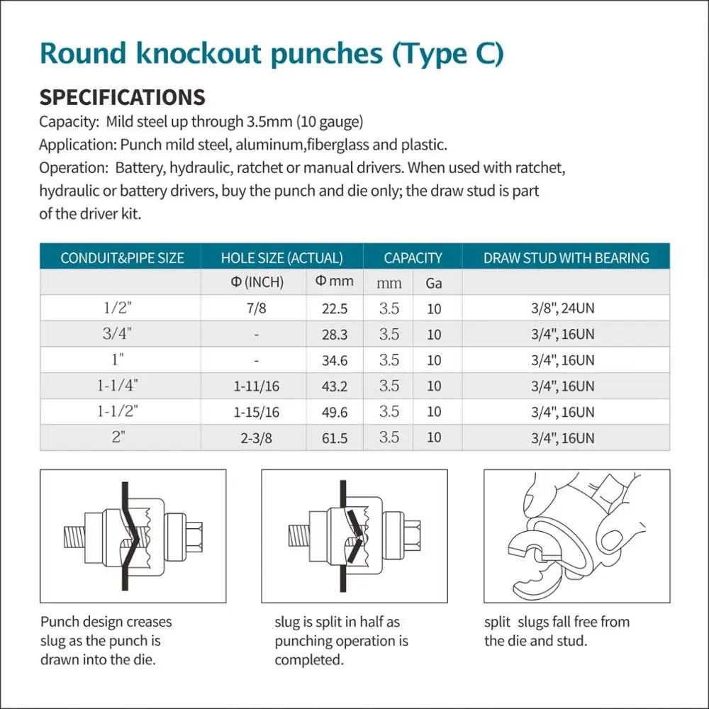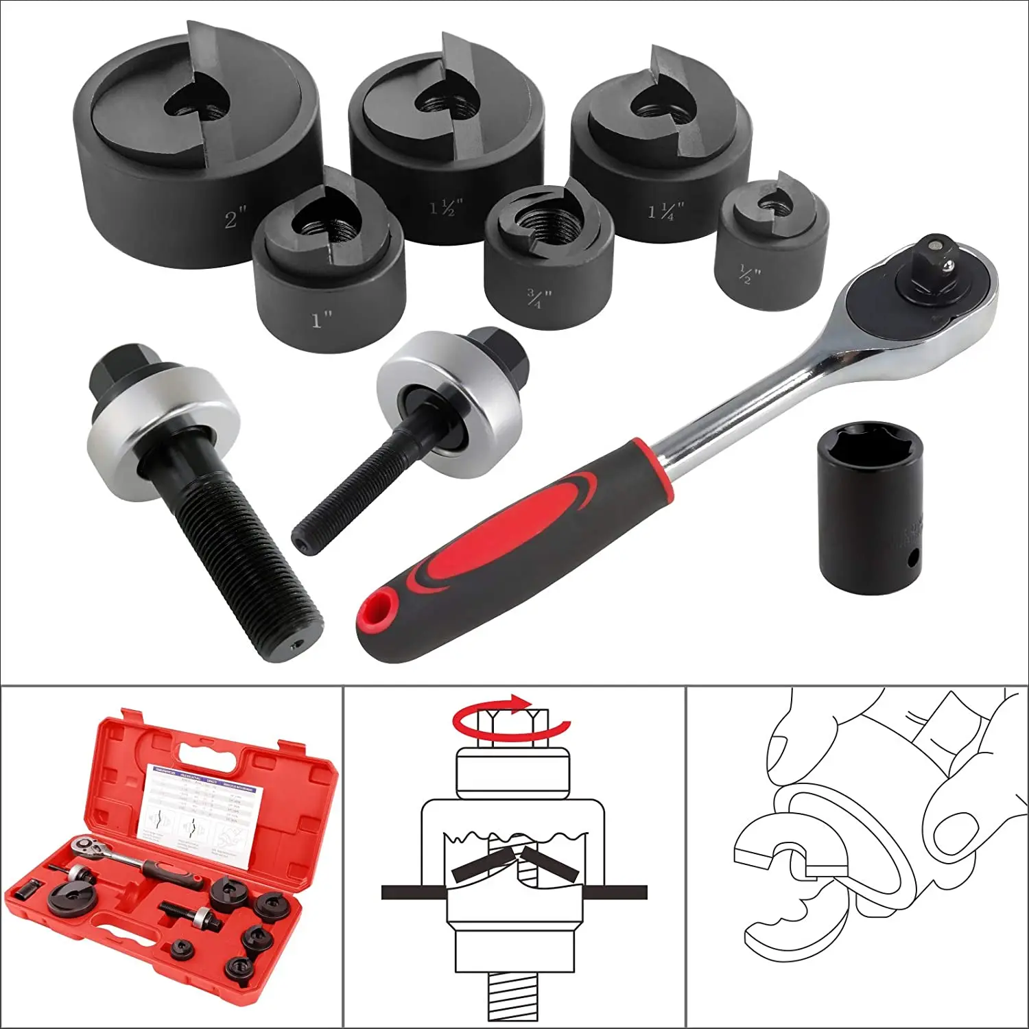Ручной храповый нокаут Дырокол драйвер комплект 12 до 2 дюймов (22,5-61,5 мм) для электросетей отверстие набор из быстрорежущей инструментальной стали ко ящик для инструментов CC-60