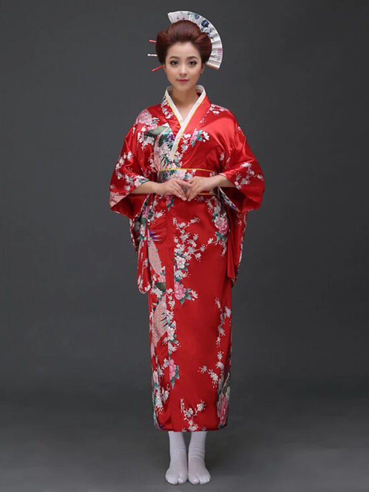 Кимоно женское винтажное красное, банное платье в японском стиле, платье из искусственной шелковое кимоно-юката с Оби для выступлений, одеж...