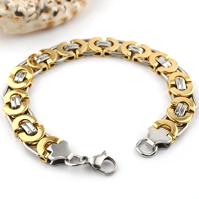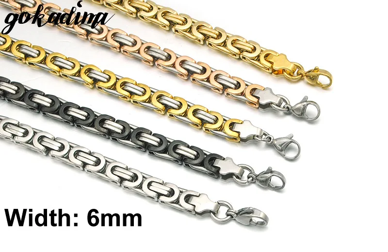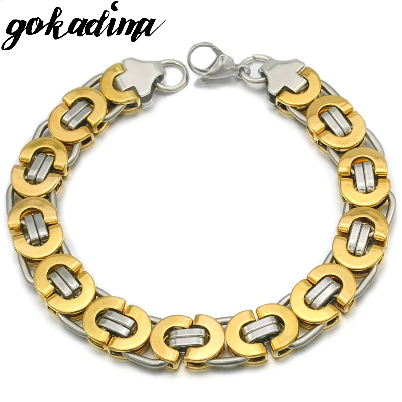 Gokadima мужской браслет золотого цвета из нержавеющей стали плоская Византийская цепь браслет на Рождество подарок хип-хоп ювелирные изделия