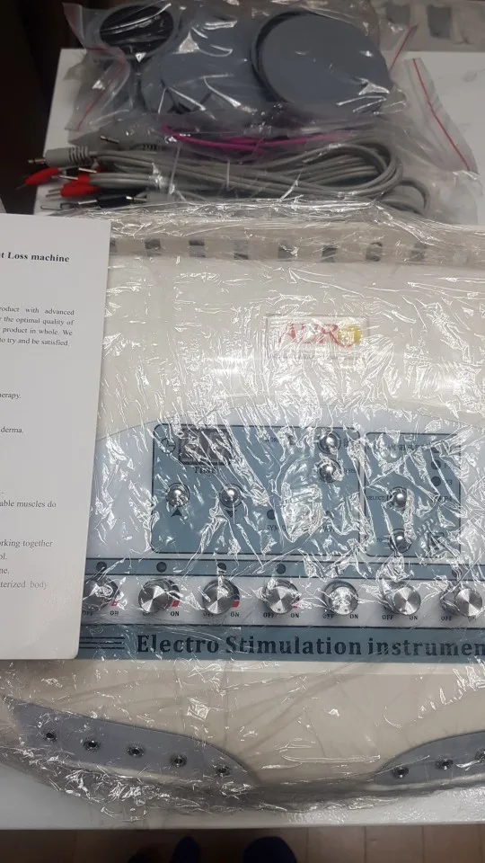 ехало конечно долго.принесли домой,сдек.трек не отслеживался.все целое и работает,приехало в двух коробках картонных.из минусов : для лица нужны ещё электроды.резинки маленькие и узкие,для попы и талии не подойдут.нужны широкие.чем плотнее площадь прилегания электрода ,тем эффективнее .постараюсь все это дозаказать.машинка мощная,качает !