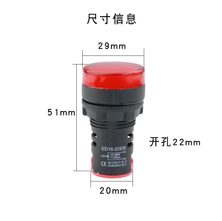 5V 12V 24V 110V 220V 22mm светодиод для монтажа на панель индикатор питания