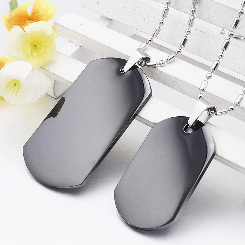 Пустой черный жетон собаки кулон и ожерелье из нержавеющей стали мужские украшения