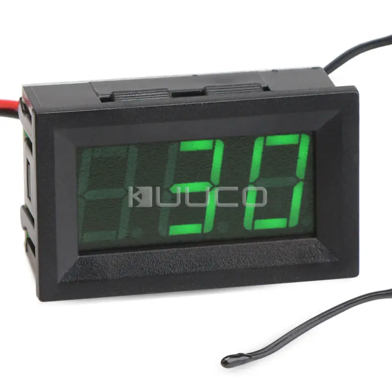 Цифровой термометр-30 градусов до + 70 градусов Зеленый светодиодный цифровой тестер постоянного тока 12 В 24 В измеритель температуры для автомобилядомана открытом воздухе и т. Д.