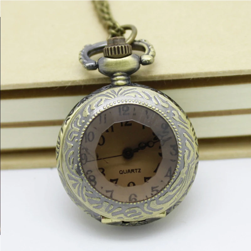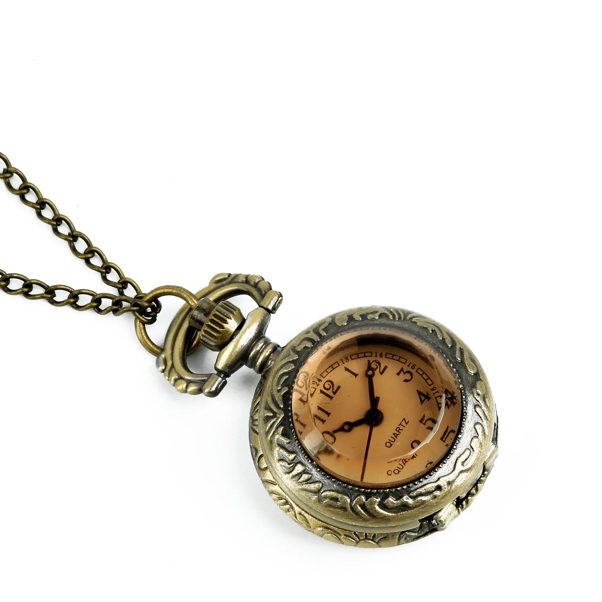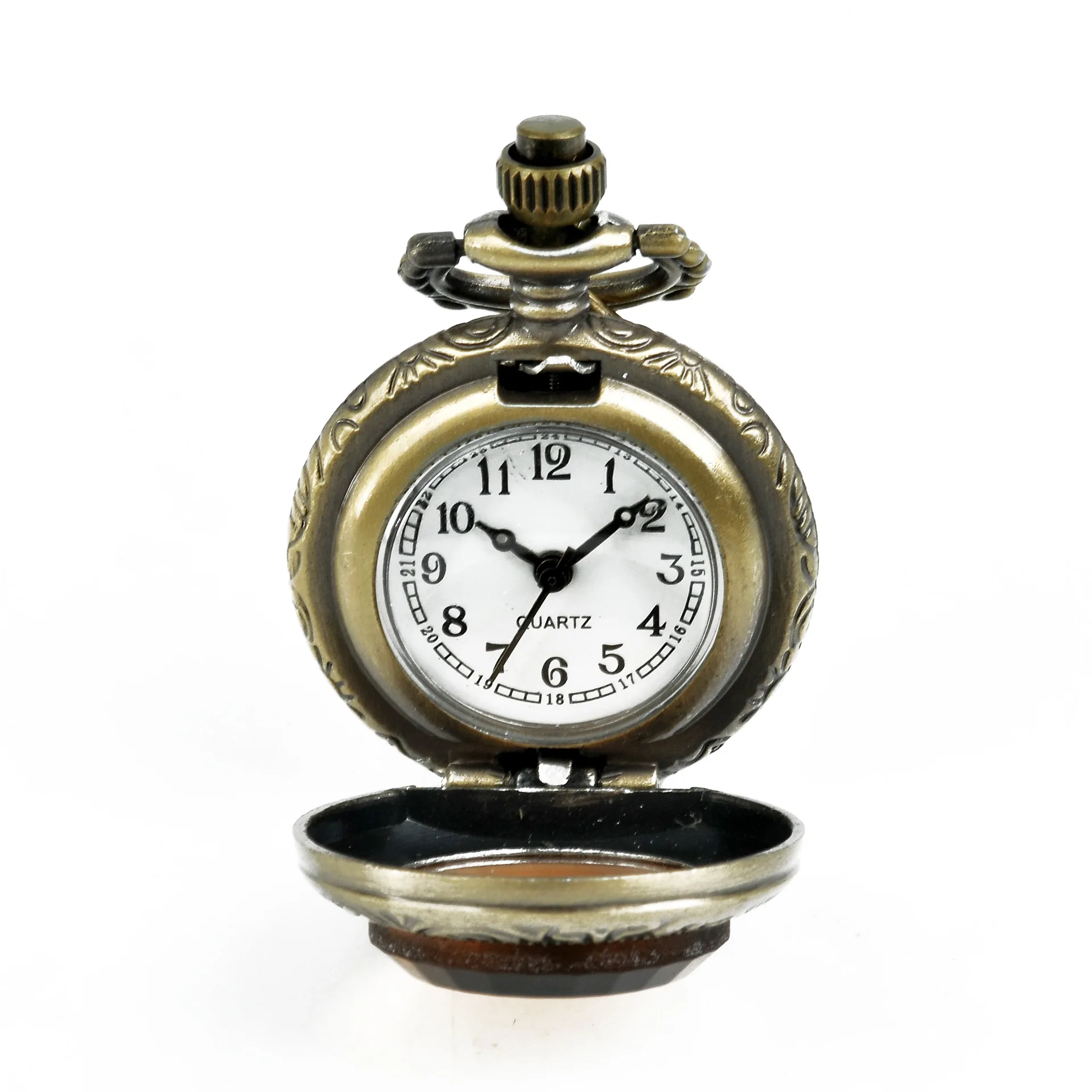 (3016) 12 шт.лот винтажная античная бронза маленький размер стеклянная крышка карманные часы ожерелья с цепочкой часы кулон