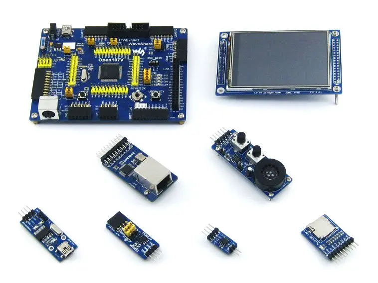Плата Waveshare STM32 STM32F107VCT6 TM32F107, макетная плата ручной фонарь, модель STM32 + Комплект модуля аксессуаров 6 = упаковка Open107V