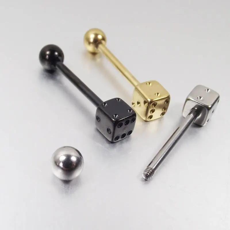 1 шт. Бесплатная доставка, кости из нержавеющей стали, кольцо для языка, кольца, Золотые Квадратные Украшения для Пирсинга ногтей