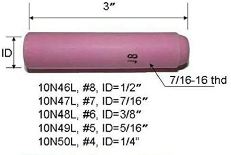 Эти керамические стаканчики из глинозема подходят для всех факелов с воздушным охлаждением серии 17 и 26 и факелов с водяным охлаждением серии 18, включая PTA-17 Lincoln, PTA-18 и PTA-26, Miller Diamondback DB17, DB18 и DB 26, наряду со сварочным ремеслом WP-17, WP-18 и WP-26 факелами.