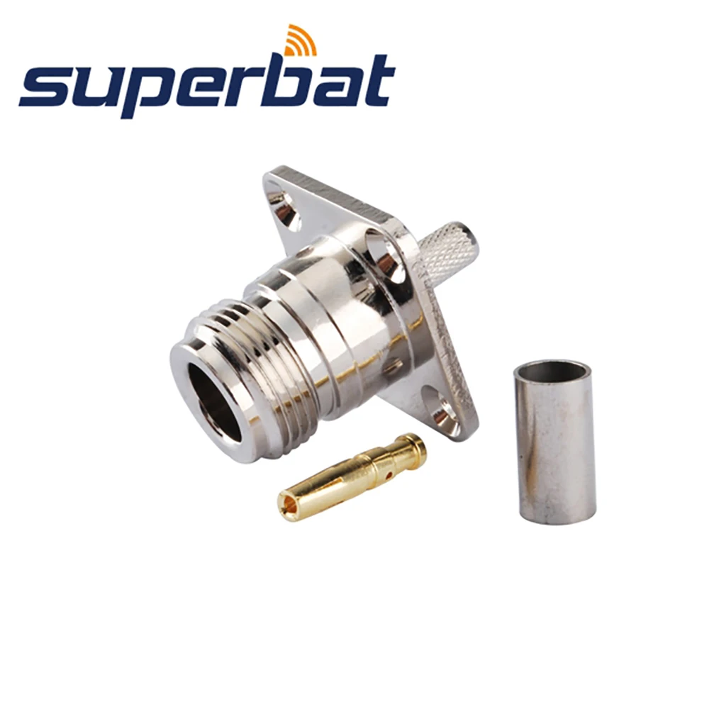Superbat N обжимной гнездо с 4 отверстиями, Панельное крепление, радиочастотный коаксиальный разъем для кабеля RG58 RG142 RG400 LMR195