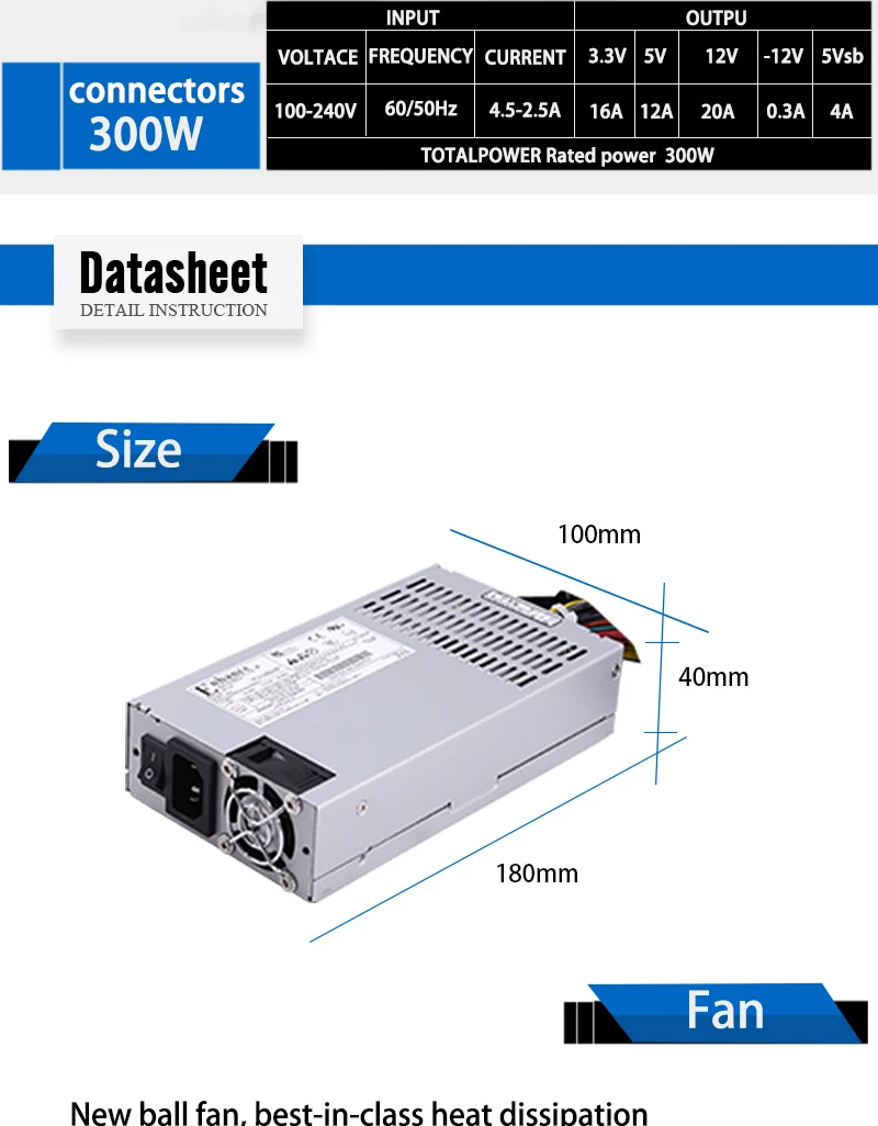 Высокоэффективный Номинальный 300 Вт усиление 80plus Промышленный источник питания для сервера 1U