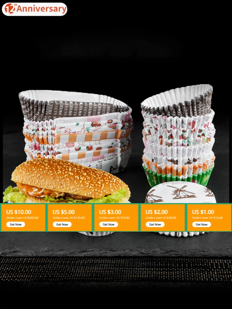Круглые Бумажные стаканчики для кексов, 200 шт., бумажный поднос с пищевым покрытием, форма для кексов, маффинов, бумажный поднос для хлеба