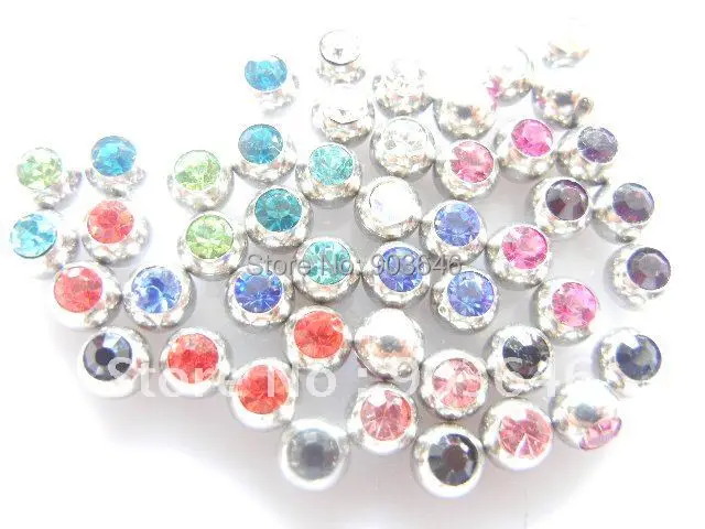 Бесплатная доставка, 200 шт.лот, Кристальные шарики из драгоценного камня, сменные украшения для пирсинга тела, для языка, пупка, бровей, губ, 14 г16 г