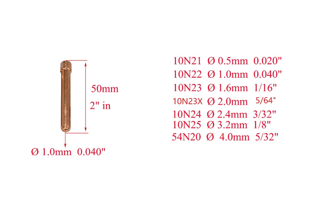 Горелки для сварки TIG 10N23, 116 дюйма и 1,6 мм, подходит для свар...
