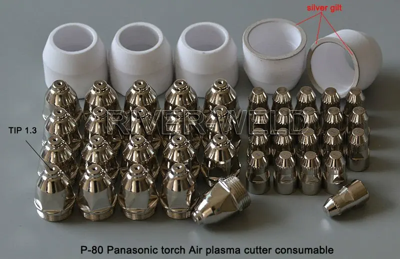 P80 Panasonic Плазменный щит чашки электроды насадкинаконечники 80Amp 1,3 мм Воздушный плазменный резак фонарь расходные материалы 45 шт