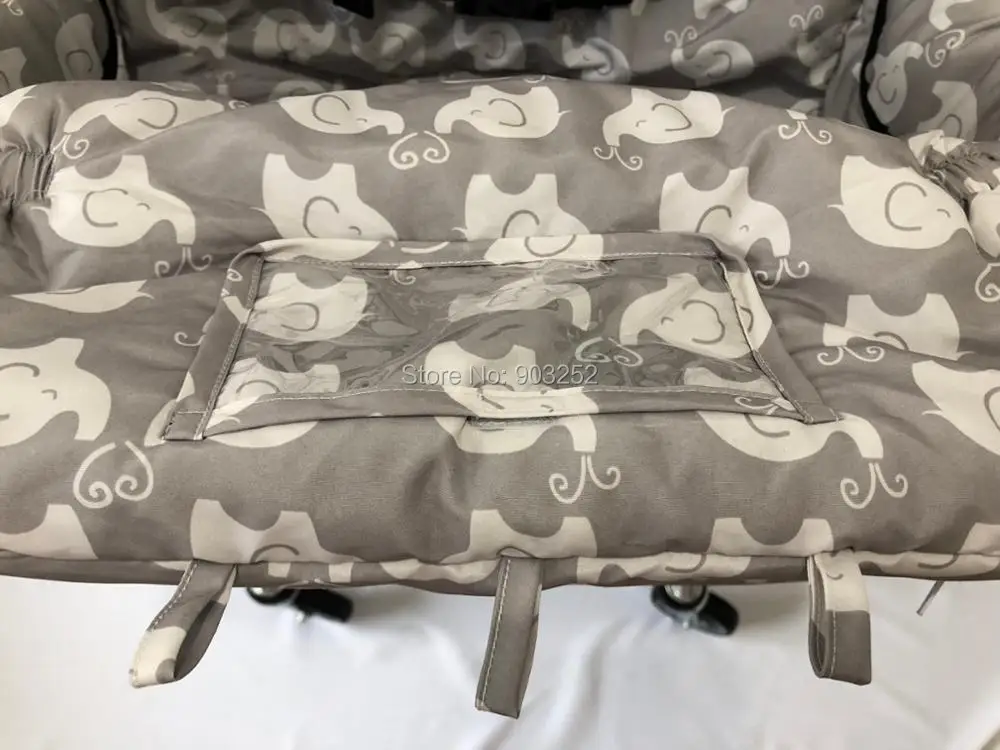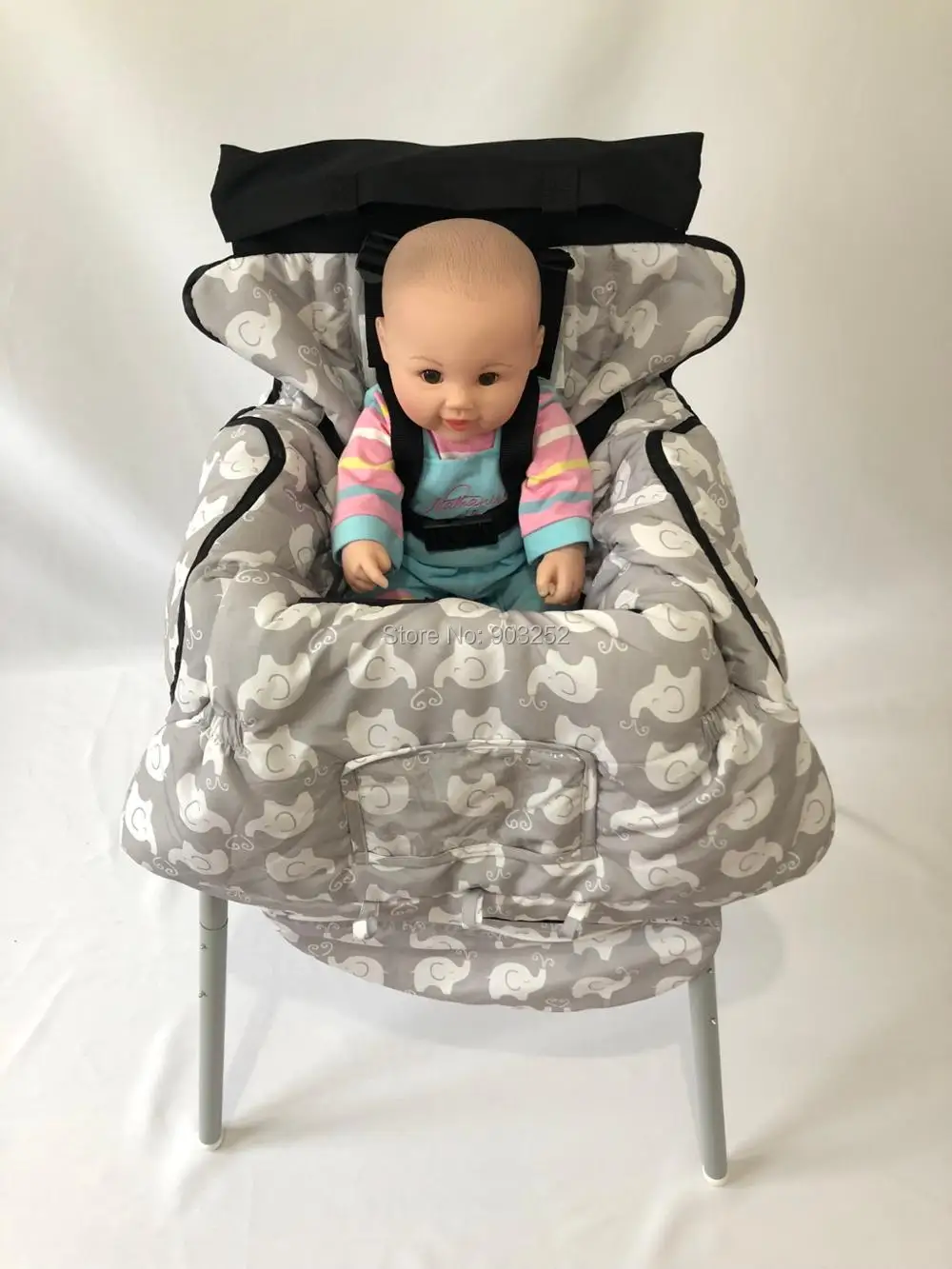 Чехол для стульевЭтот чехол не только подходит для тележек, но и подходит для большинства общественных стульев. Легкий переход от корта для еды к супермаркету, чтобы завершить продукты с полным наполнителем. Поместите крышку на высокий стул и закрепите ремень безопасности вокруг стула, а затем установите Ремень на ребенка.