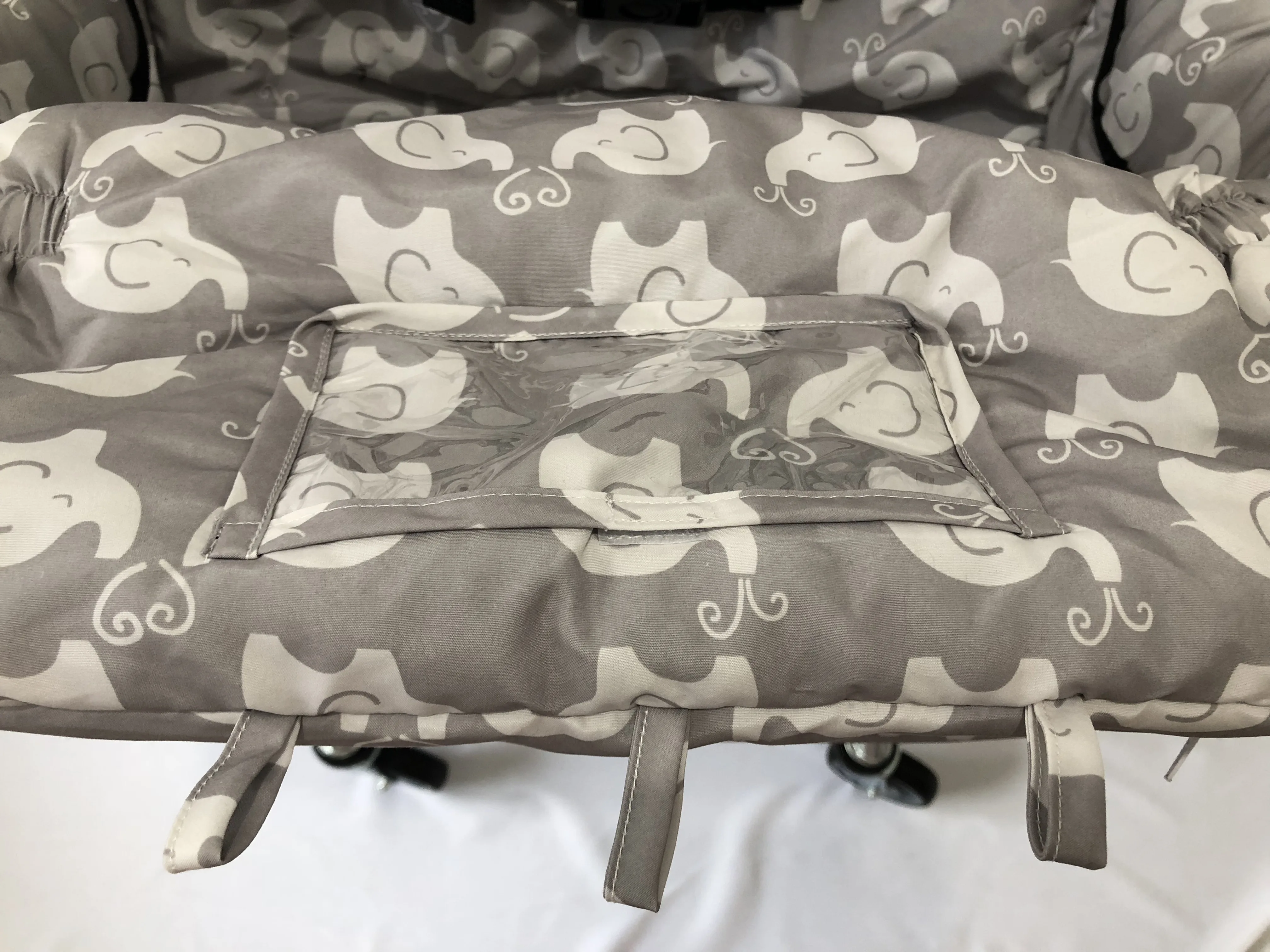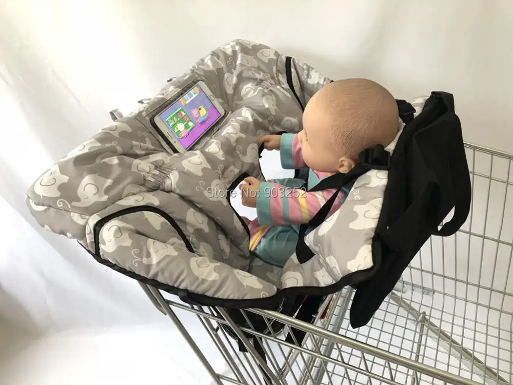 Наша крышка тележки для покупок оснащена ремнями безопасности для надежного удержания вашего ребенка в тележке. Чехол также имеет прозрачный карман, чтобы держать ваш телефон в безопасности, а также видимым для легкого развлечения во время покупок. Чехол также включает в себя 3 петли для игрушек, которые позволяют прикрепить игрушки и предотвратить их выброс или падение с тележки.