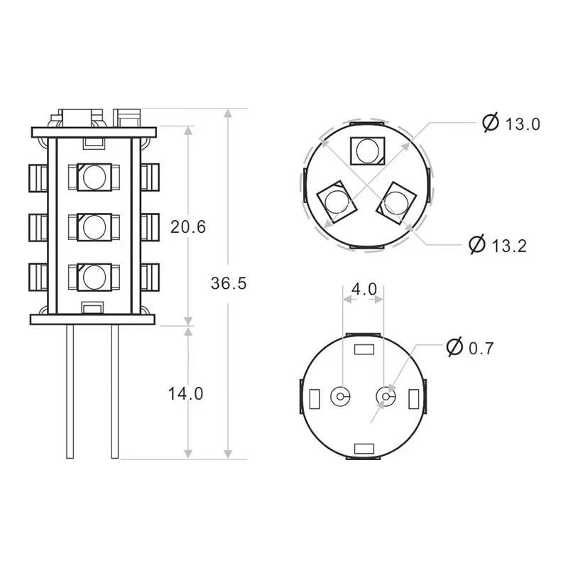 Товар: G4 светодиодный светильник, лампа башенного типа, светодиодная морская лампа переменного токаВысокомощный светодиодный G4 светильник, светильник, 0,9 Вт высокомощный Светодиодный точечный светильник, светильник, 15 шт. 3528 SMD, светодиодный светильник для замены, 6400k Дневной светильник белый и 3500K теплый белый с G4 фитингом, подходит для стандарта GU53/ MR16 / MR11. 2 контакта, 100-120 лм яркость эквивалентна 10 Вт-15 Вт галогену. Также можно использовать d в домах для замены галогенных ламп 12 вольт и 24 вольт, оптимальное использование с источником питания постоянного или переменного тока.Длительный срок эксплуатации: Белый светодиодный До 50000 + часов (5,7 + лет), сэкономить на ваш счет за электричество путем замены ихПрименениеСистемы солнечной энергии, ветрогенератор, гидрогенераторИспользуйте дома при надлежащем напряжении постоянного токаНебольшие домашние проекты.Научные проекты.Электронные приложения.RV, яхты, лодки, корабли, автомобили, тележкиУкажитеМодель: G4-15-13AСветильник источник света: 15 шт. 3528 SMDНапряжение: широкий DC10-30V напряжения/AC8-20VРазмеры: Φ13*23 мм, штифт 14 мм, общая длина 37 ммУгол луча: 360 °Тип основания: G4Освещение: 105-120лмМощность потребляют: 0,9 WДиммируемый, диммер для поверхностного монтажаЦвет: белый, теплый белый, холодный белыйБи-полярности, способные