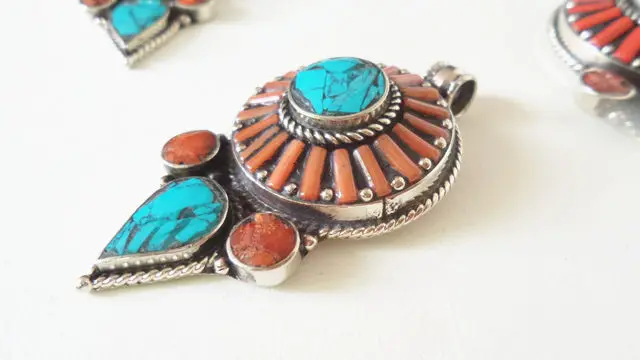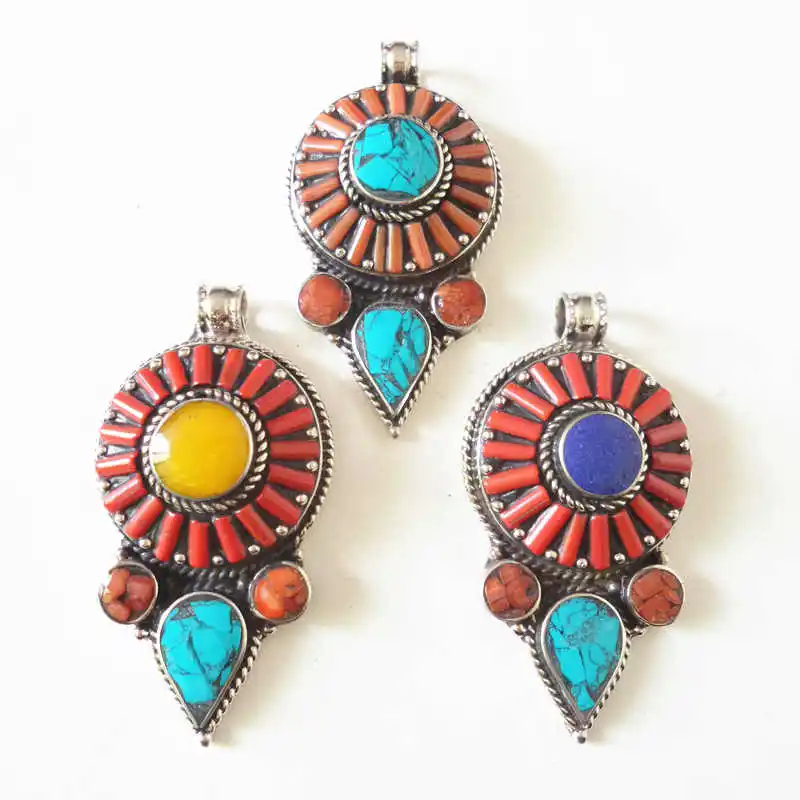 TBP181 непальская ручная винтажная Большая подвеска медная инкрустированная разноцветная каменная Подвеска со стрелкой