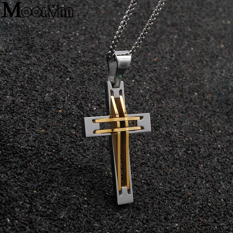 Мурван! Ожерелье с подвеской в виде креста, Минималистичная бижутерия, распятие, цепочка из нержавеющей стали для мужчин, ювелирные изделия, VP387
