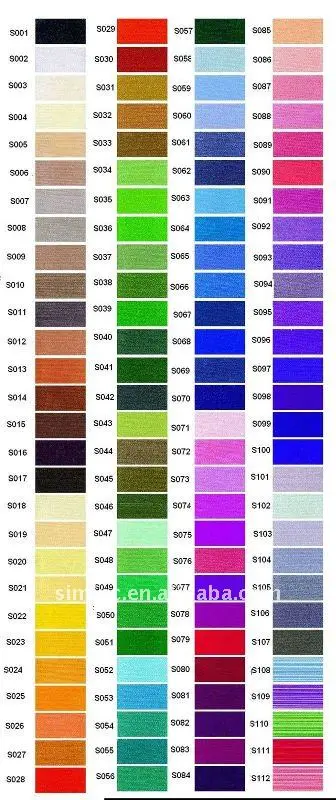 Наши основные продуктыПолиэфирная нить для вышивки (доступно 61 цвет, Simthread 112 цветов),Нити для вышивания из искусственного шёлка, Нить для вышивки люрексом (металлическая нить), Швейная нить (Набор цветных нитей для шитья), Prewound бобин,Пластиковые бобиныИ т. д.Мы также можем помочь в производстве высококачественных цветных диаграмм, в настоящее время мы улучшаем цветовые диаграммы для многих известных поставщиков нитей на рынке.