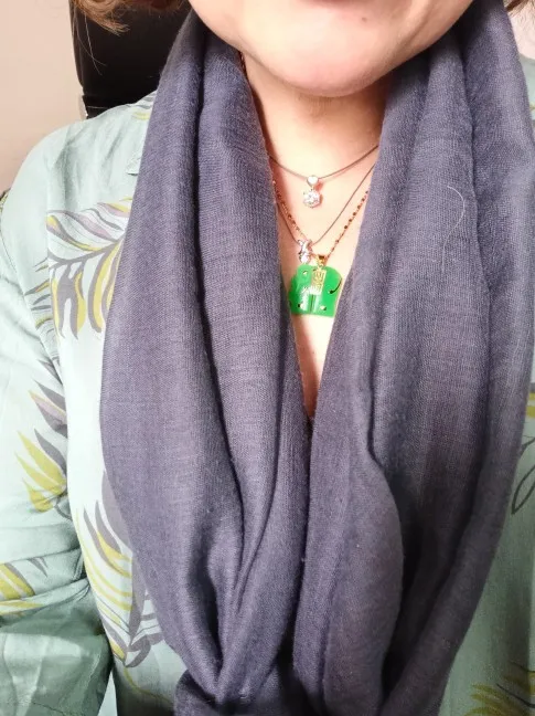 Изумительный кулон, красивый зеленый цвет, аккуратно сделан. Все, все детали на слоне находятся на своем месте. Золотая (или золотистая) цепочка также включена, и она очень красивая. Цепочка выглядит как настоящее золото, длина около 40 см.