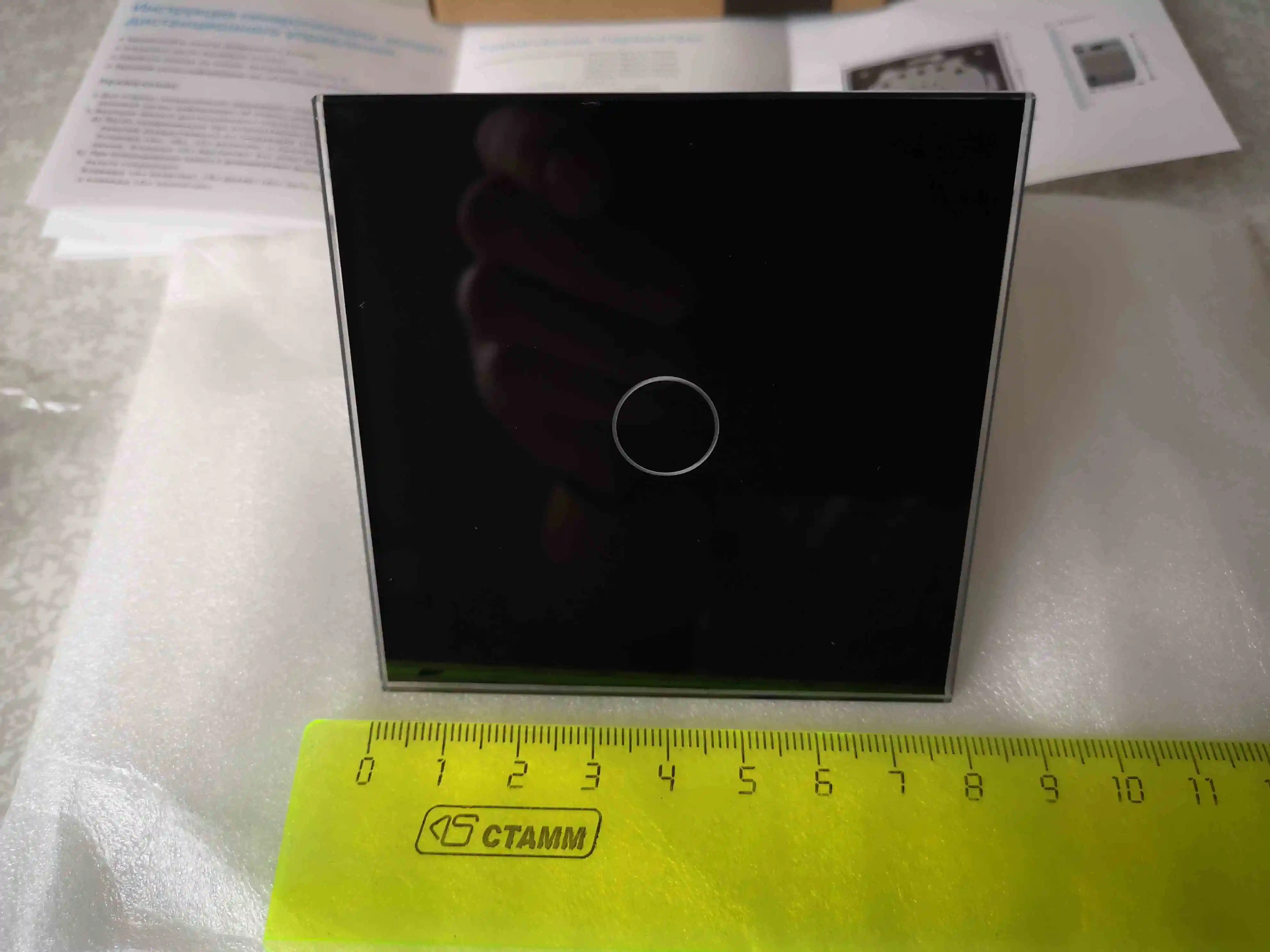 Выключатель пока что не установлен, так что отзыв потом дополню. Качество шикарное, стекло панели зеркально гладкое, цвет очень красивый. В комплекте стеклянная панель и собственно выключатель, каждая деталь в отдельной коробке из плотного картона, и эти две коробки ещё в одной общей коробке, так что упаковка на пять с плюсом, вероятность, что панель разобьётся по дороге, очень мала. Доставка в Московскую область 39 дней с полным отслеживанием. Продавец отличный, товар с большой скидкой отправил без проблем.