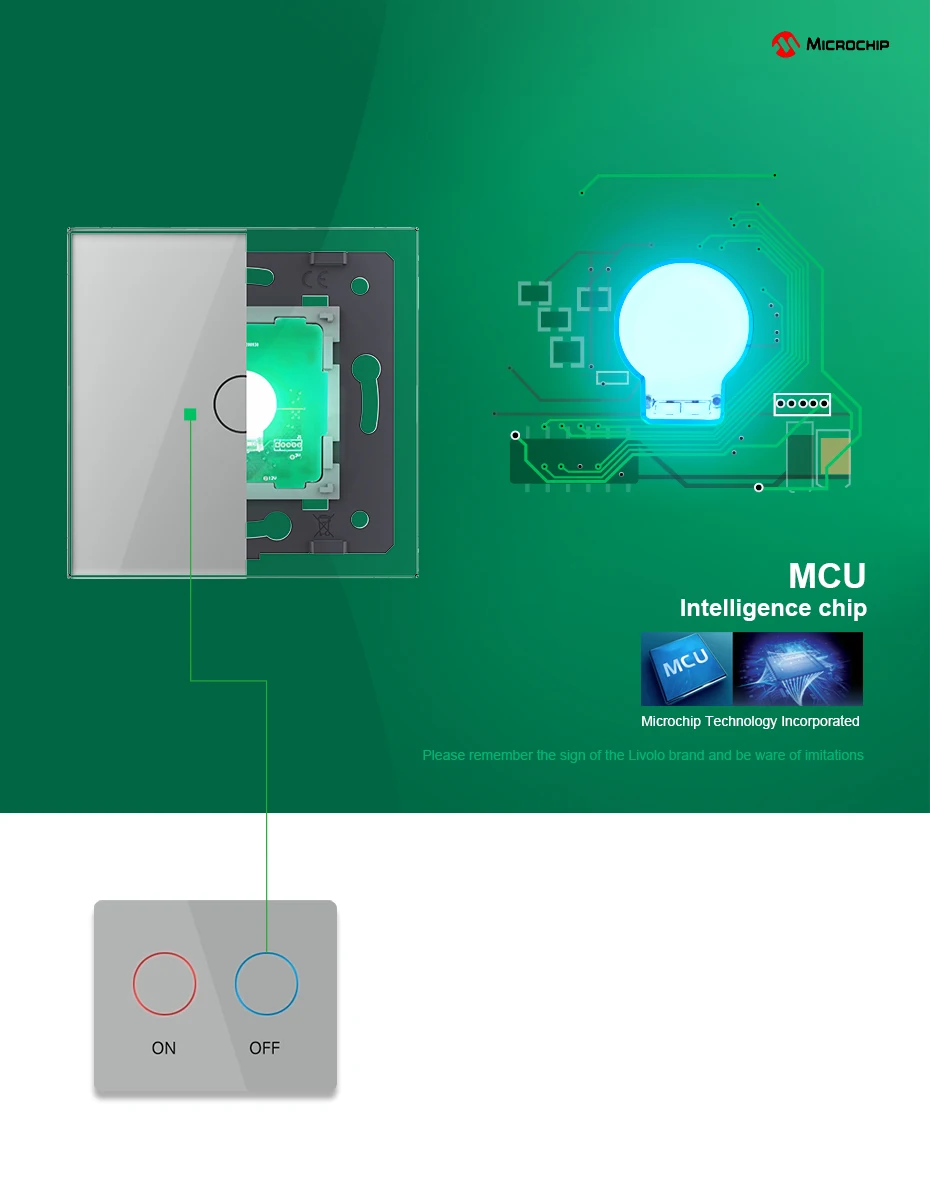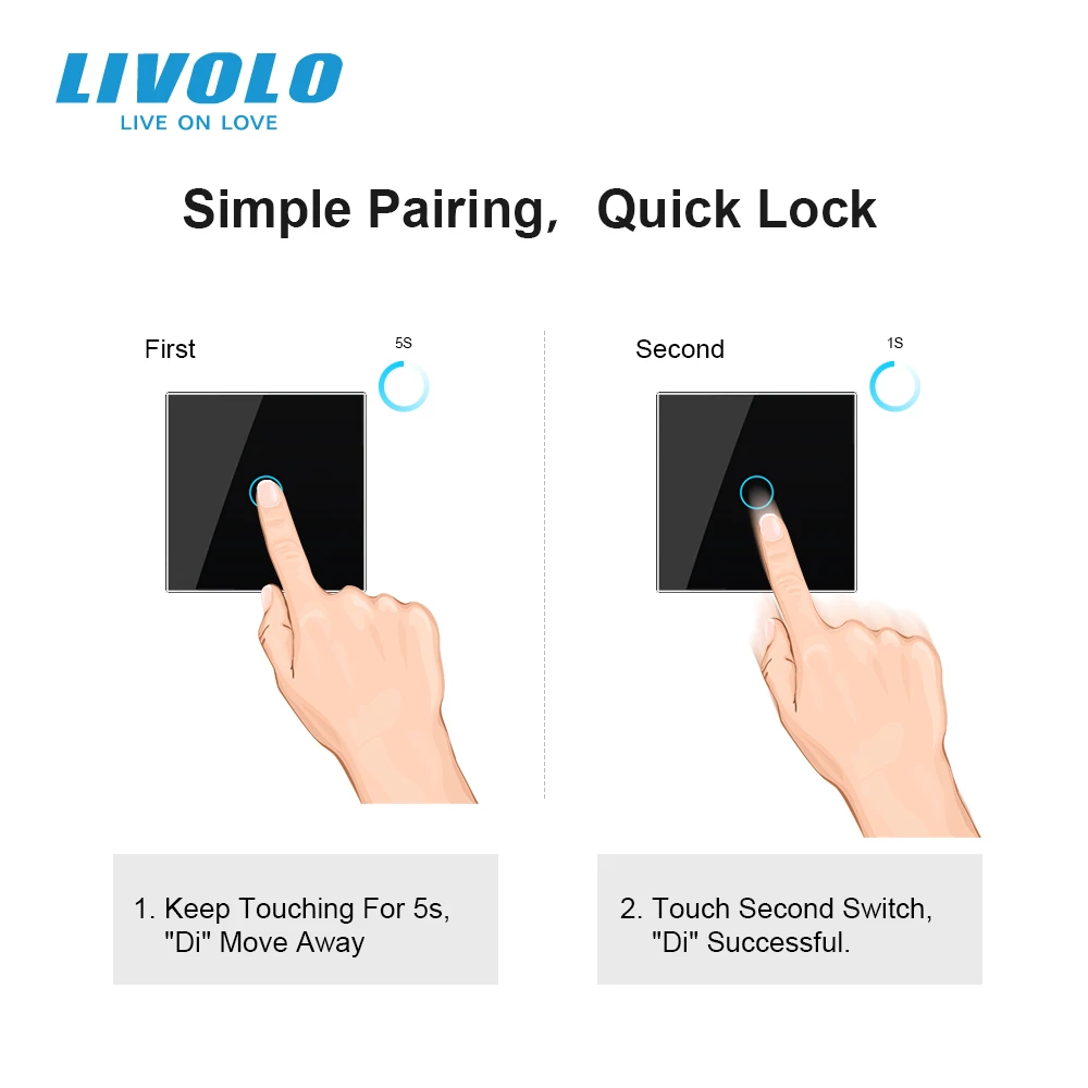 Высветильник ель настенный сенсорный Livolo стандарта ЕС, 1 клавиша, 2 канала, 220-250 В